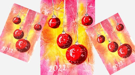 Нарисуем Новогоднюю открытку. Рисуем новогодние шарики. Рисуем новый год.