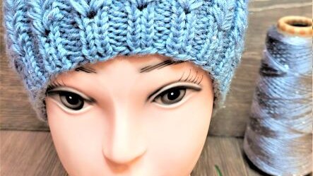 Шапка спицами с красивым объемным узором и подкладом