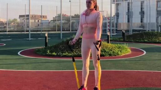 Подъём на бицепс для девушек с трубчатыми эспандерам