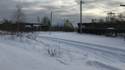 Снег на крыше, на деревьях. Снег лежит кругом.
