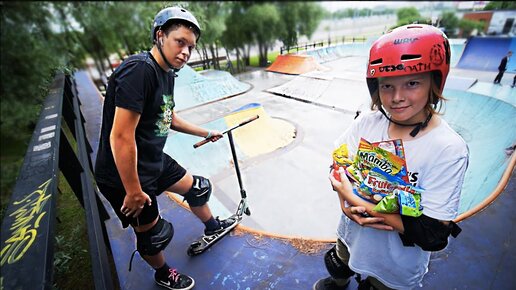 ЧОКНУТЫЙ САМОКАТЧИК - НЕВЕРОЯТНЫЕ ТРЮКИ за МАРМЕЛАДКИ