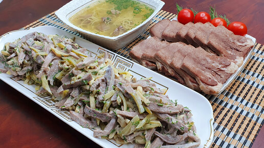 Муж приготовил праздничный ужин, из говяжьего языка.