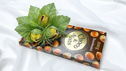 Diy декор плитки шоколада орешками из конфет и гофрированной бумаги. Мини презент своими руками.