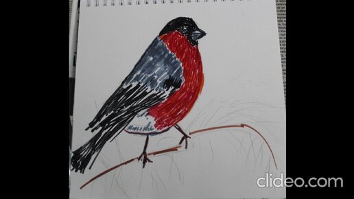 Рисую акварельными маркерами снегиря