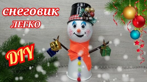 Взяла стакан и сделала сказочного СНЕГОВИКА. Быстро и просто. Новогодние украшения своими руками.