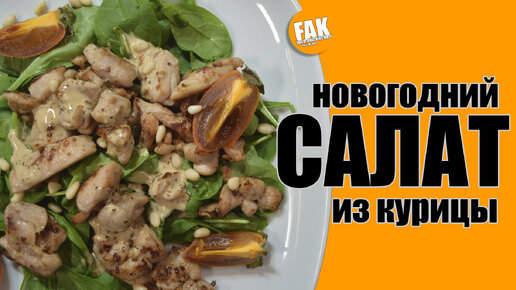 Лёгкий Новогодний салат с курицей и листьями шпината