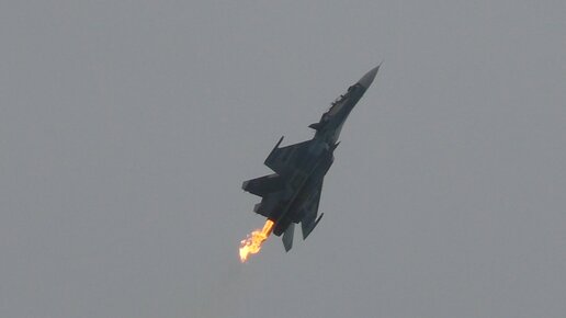 Помпаж во время пилотажа. Выброс пламени у Су-30