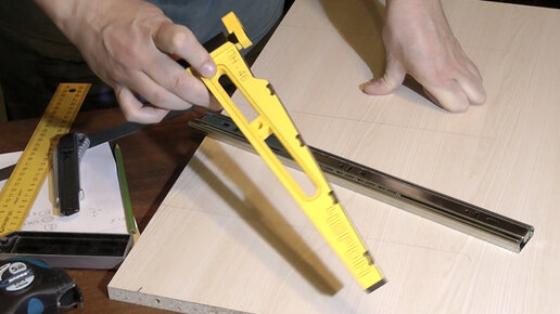 Мебельный кондуктор для установки направляющих выдвижных ящиков.