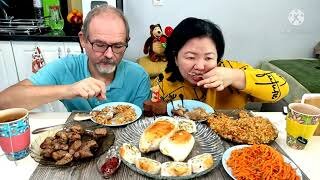 МУКБАНГ ШАШЛЫК Из ШЕЙКИ, Узбекский ПЛОВ, МОРКОВКА По КОРЕЙСКИ, Кочуджан, Фаршированные КАЛЬМАРЫ!