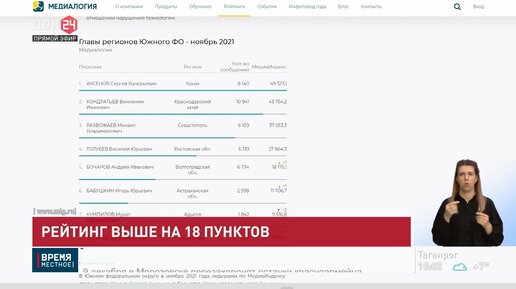 Василий Голубев в рейтинге «Медиалогии»