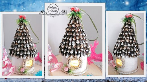 DIY🏡ИГРУШКА НА ЕЛКУ-СВЕТЯЩИЙСЯ ДОМИК из картона и шишек своими руками🏡Анна Кохан