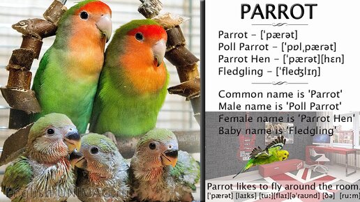 Английский самостоятельно. Домашние птицы и их питомцы. Попугай - перевод на английский. Parrot.