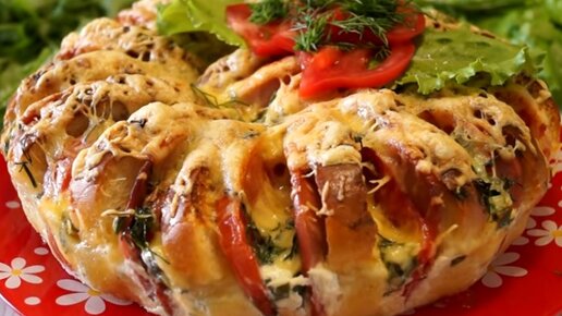 Ленивый пирог из батона колбасы и сыра, готовлю вместо пиццы, съедается не успевая остыть