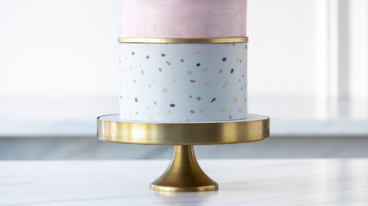 Декор торта с кусочками мастики и золотым поясом