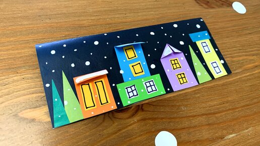 Простой зимний городок. Новогодняя аппликация для детей.