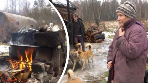 Готовят на костре. Как в заброшенной деревне выживают женщина и ее сын