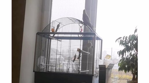 Завтракаю, а наш питомец, попугай кореллка Стасик, ругается на меня из-за шторки, которую ему не разрешили погрызть