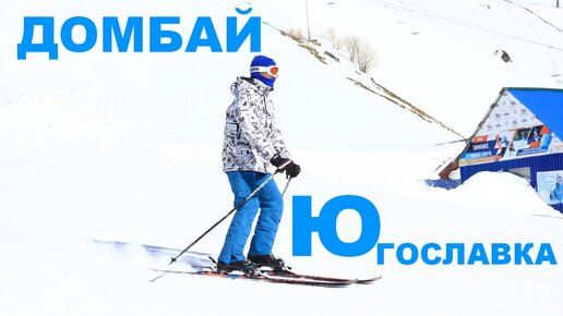 Домбай горнолыжный курорт. Сильный ветер, туман и снег. Спускаемся на горных лыжах с 5 на 3 уровень по трассе Югославка.