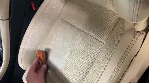 Химчистка салона автомобиля. Эффект на белом кожаном салоне.