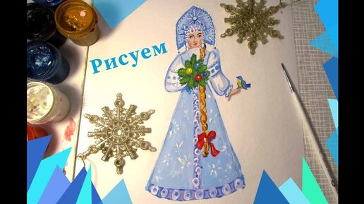 Рисуем Снегурочку гуашью. Пошаговый рисунок