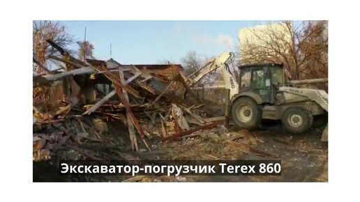 Экскаватор погрузчик Terex 860 в работе при демонтаже здания