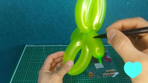 Как сделать собачку из длинного шарика? Показываю на зеленом шарике