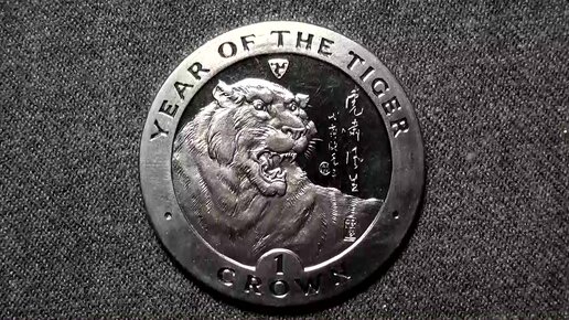 Монета 1 крона Острова Мэн 1998 года. Год тигра.