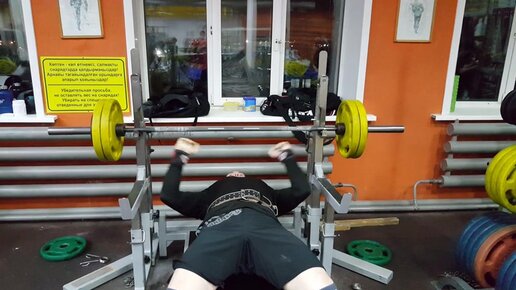 Тренировка жим лежа в тренажерном зале.