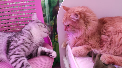 Настырная кошка Ириска упрашивает кота Вольта помириться, она так мило его упрашивает, но кот реагирует нападками и кусается