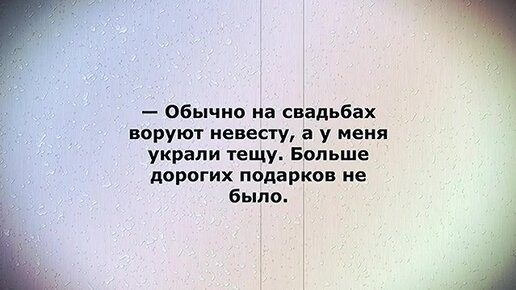 - Обычно на свадьбах воруют невесту, а у меня украли тещу. Больше дорогих подарков не было...