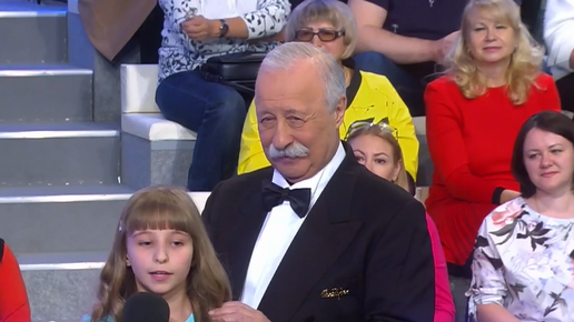 Девочка из Коломны читает Леониду Якубовичу стихи про интерактивную игру «Поле чудес»