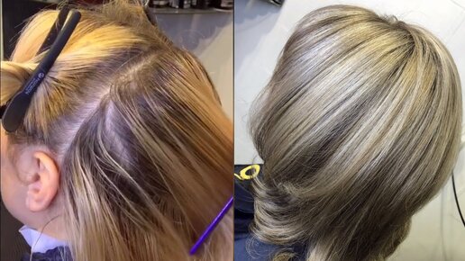 КОЛОРИРОВАНИЕ, БЛОНД С ШОКОЛАДНЫМИ ПРЯДЯМИ