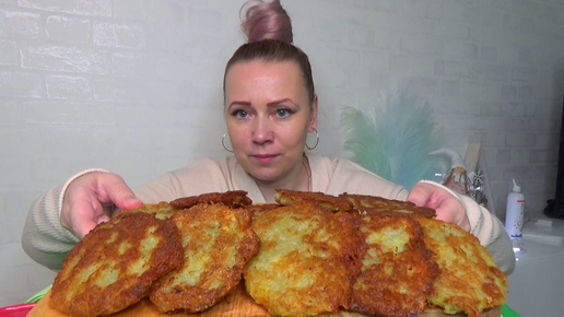 Мукбанг домашние драники картофельные со сметаной. Еда на камеру.