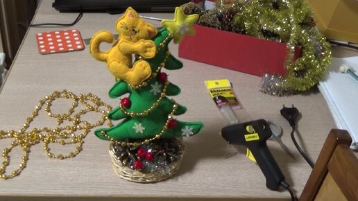Новогоднее украшение Кот на елке.