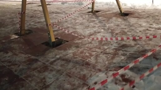 В Брянске строят детскую площадку в снегопад