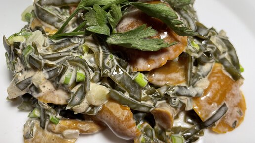 Салат с морской капустой и маринованными опятами