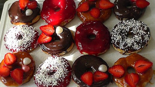 Пончики с Разноцветной Глазурью. Три вида Глазури. Рецепт.(donuts with frosting)