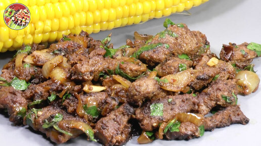Говядина жареная с луком в сковороде. Попробуйте!