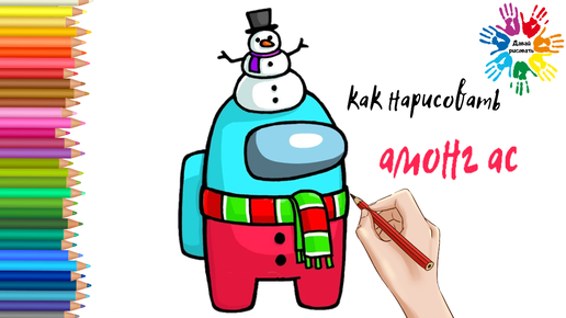 Как нарисовать Амонг Ас новогодний скин просто для детей
