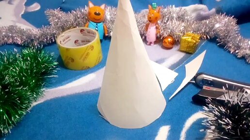 Мама Котя и папа Кот делают елочку из мишуры для трех котят: Коржика, Карамельки и Компота.