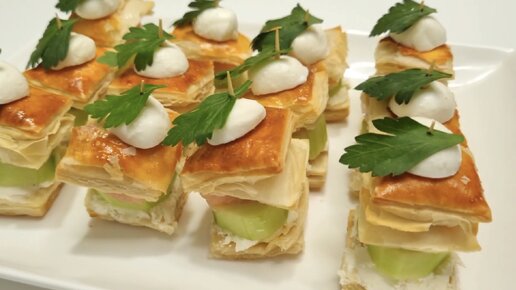 Новогодняя закуска из слоёного теста с красой рыбой и творожным сыром