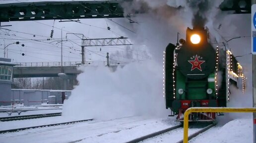 Новогодний поезд Деда Мороза в Костроме с действующим паровозом П36