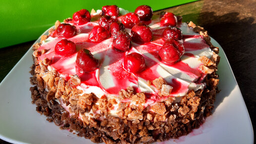 Торт "Вишня на снегу". Без духовки и миксера. Просто и вкусно.