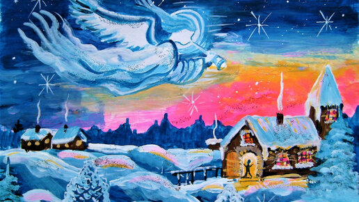 Как нарисовать зиму, Рождество, Новый год и Ангела С ОБЪЯСНЕНИЕМ! для начинающих.