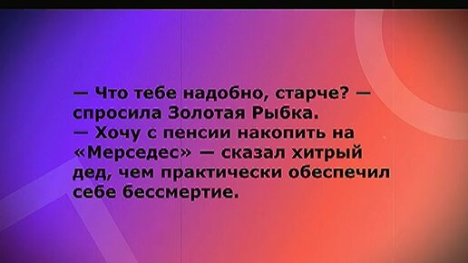 - Что тебе надобно, старче? - спросила Золотая Рыбка. - Хочу с пенсии накопить на "Мерседес" - сказал хитрый дед, чем...