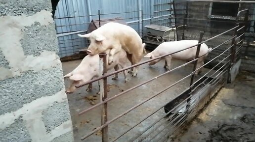 Молодые свинки начали гулять, попробуем оставить их на свиноматок. Хряк Борька своего добивается. .