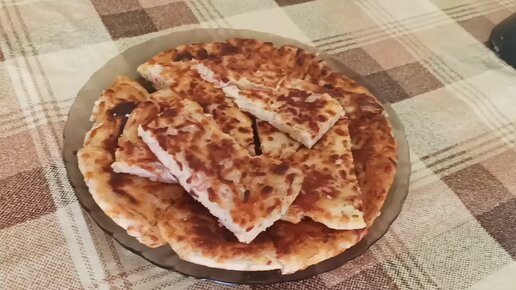 Первый раз готовил сырно колбасный пирог. Готовится за 15 минут а для теста нужны мука , кефир и яичко