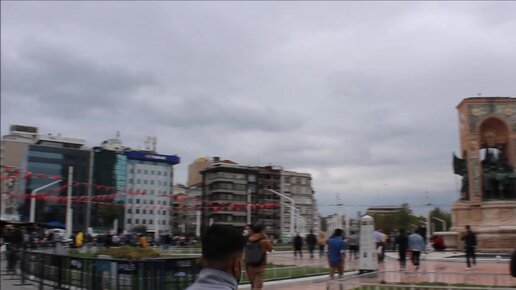 Исторический красный трамвайчик в Стамбуле, идущий через площадь Таксим