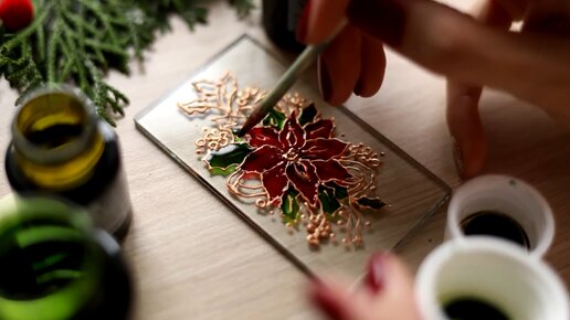 Новогодний витраж из контурных и витражных красок Pebeo