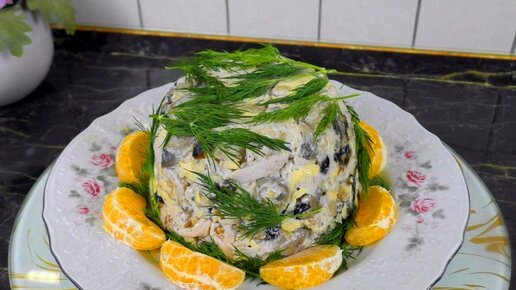 Запомнила ингредиенты и повторила салат который подавали в ресторане на свадьбе. К сожалению название не уточнила